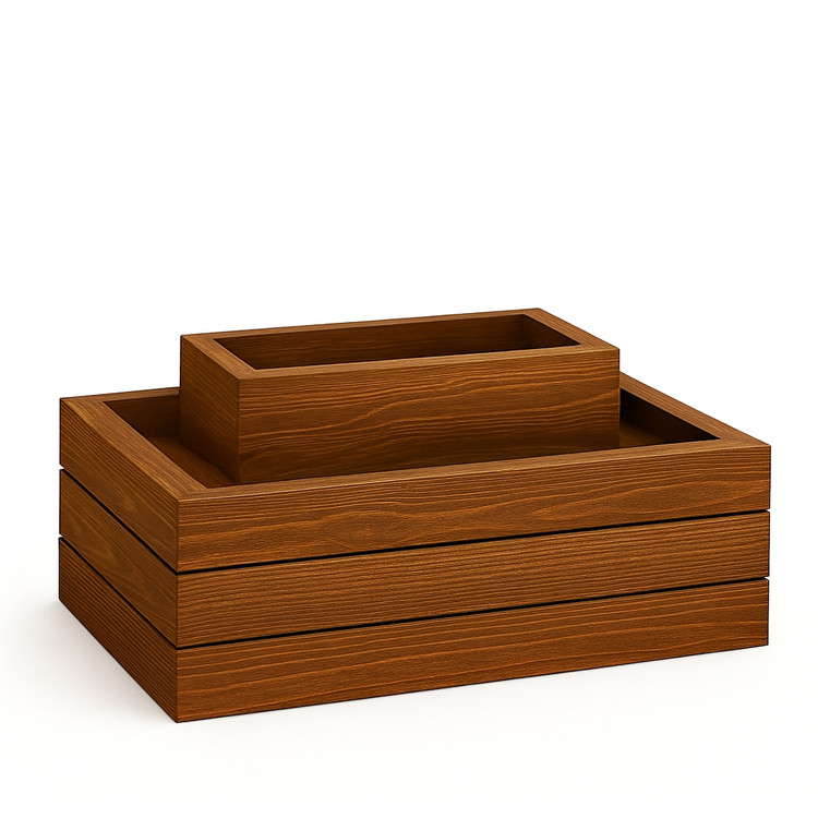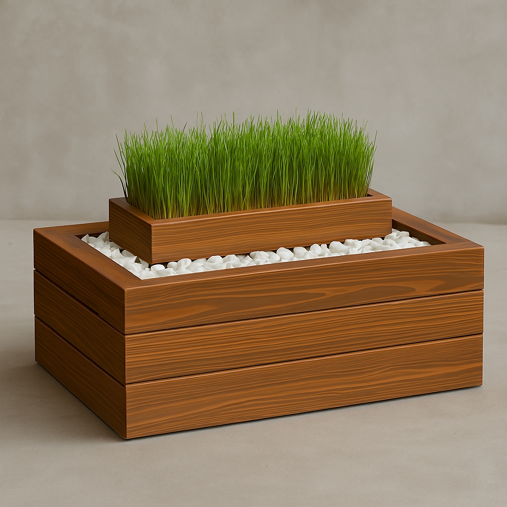 این فلاور باکس طرای زیبا با کاور چوبی و سنگریزه های رودخانه ای. فقط در مجموعه باکس بلوط طراحی و تولید میشود.